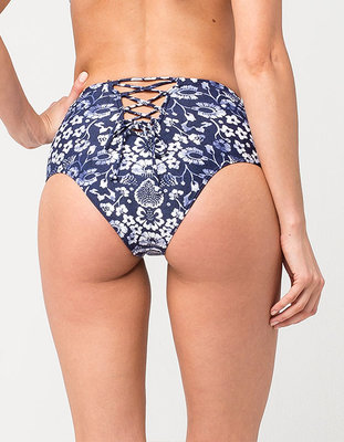 O'Neill Retro Americana high waist bikini bottoms. Featuring an allover floral print, these bottoms are adorned with feminine touches like a criss cross lace up back. The cheeky coverage adds just the perfect touch for a flattering cut. 80% polyamide/20% elastane. Hand wash. Imported.